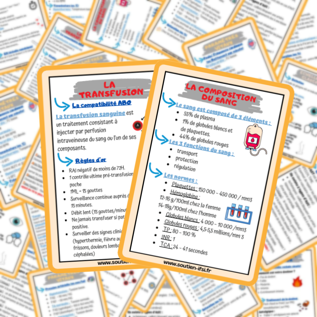 Découvrez le lots de 4 Fiches Mémos, outil indispensable pour les infirmiers, étudiants infirmiers, aide soignant(e), auxilliaire de puériculture et tout autre professionnels de santé souhaitant réviser rapidement les notions essentielles du terrain.